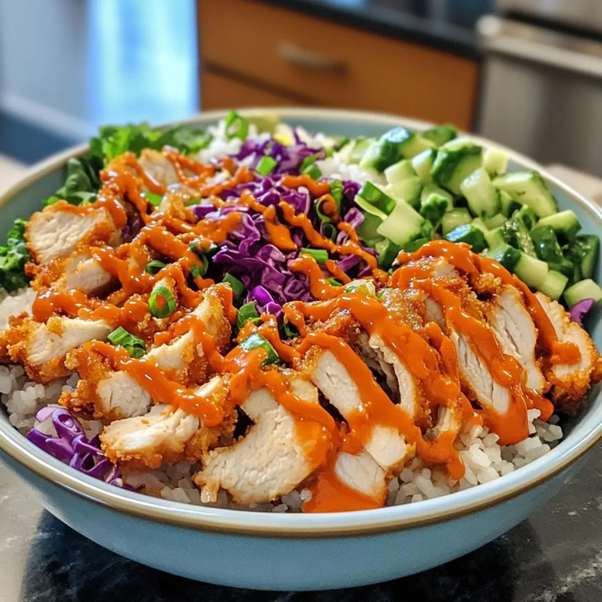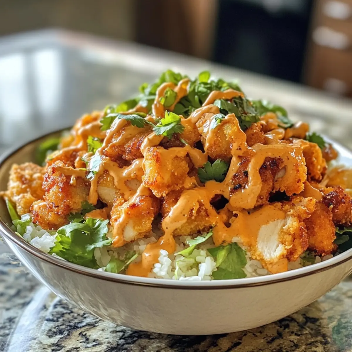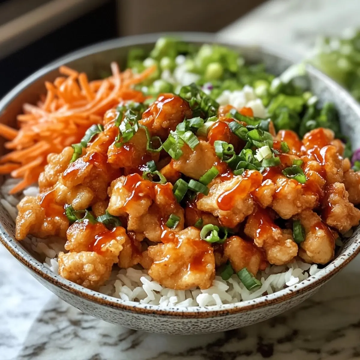 - Serve: Enjoy your Bang Bang Chicken Bowl fresh and hot.
