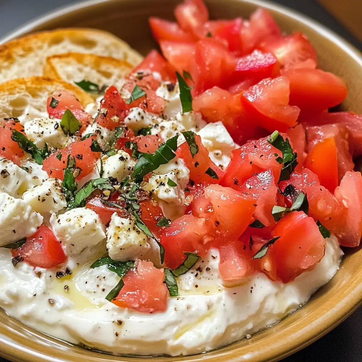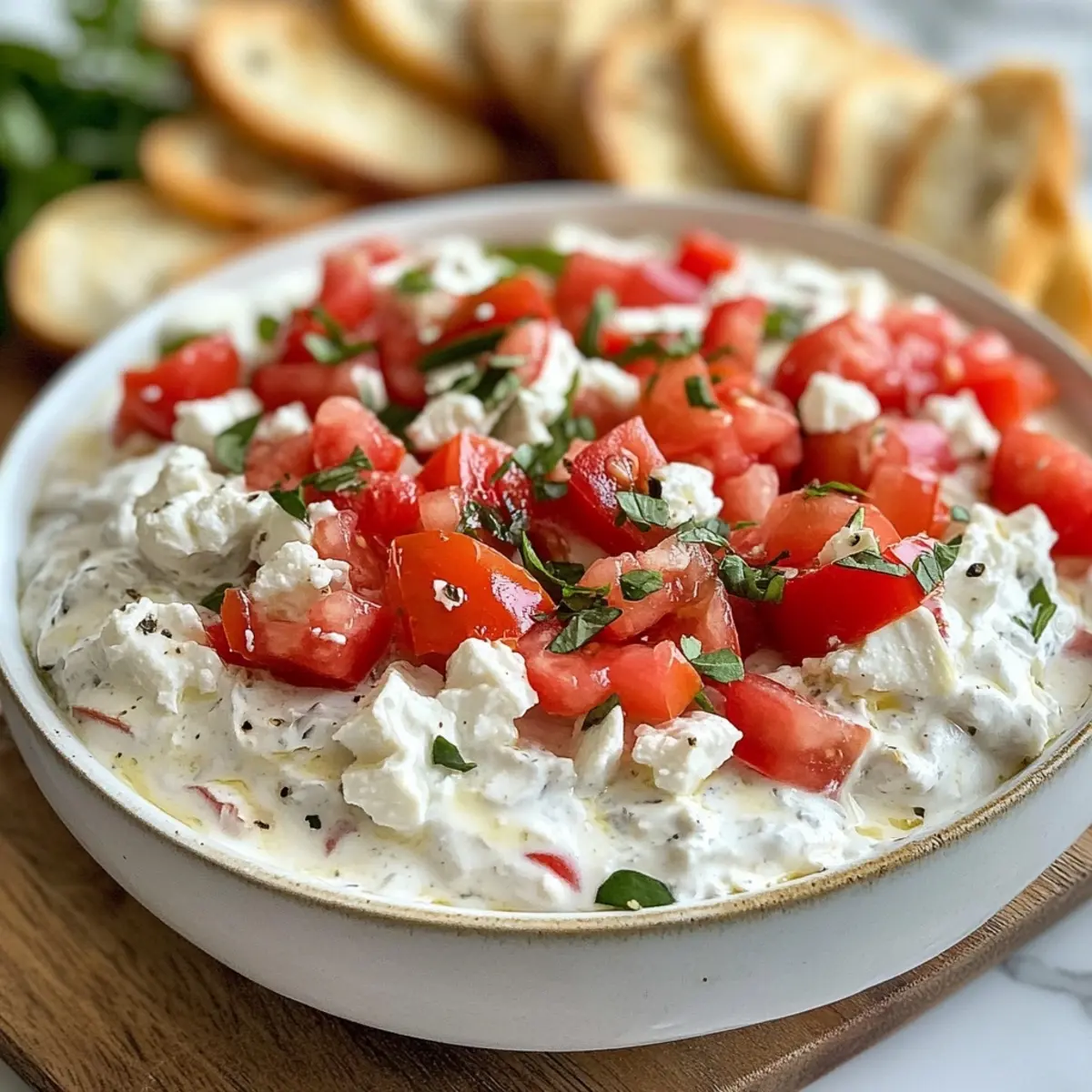 Irresistibly Easy Creamy Bruschetta Dip with Feta & Tomatoes