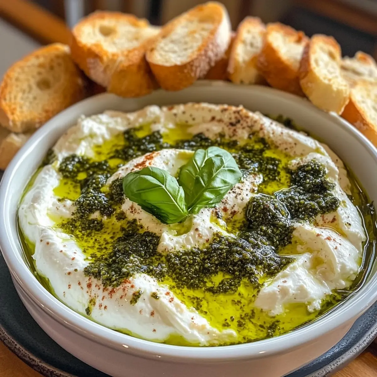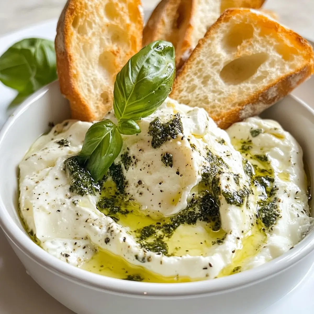 - Serve: Place the prepared burrata dip on a beautiful platter alongside the toasty baguette slices, inviting guests to dive in!