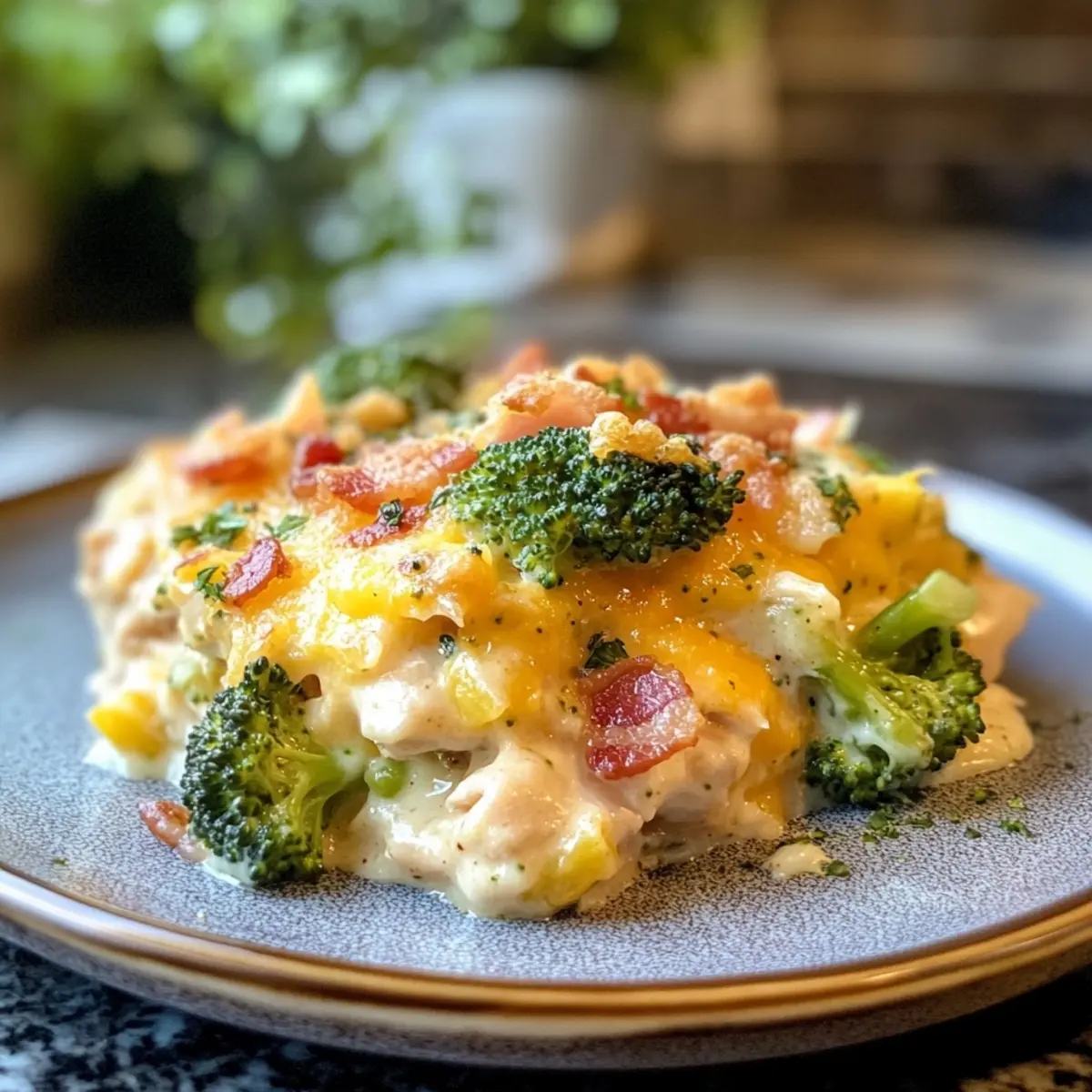 Indulgent Creamy Low Carb Chicken Casserole with Broccoli and Bacon