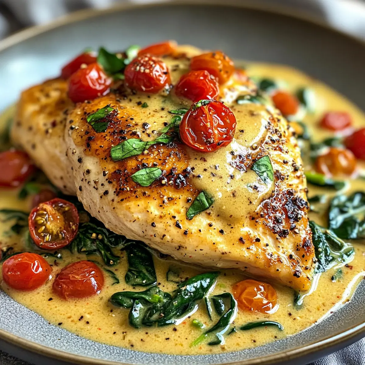 For cherry tomatoes, look for ones that are vibrant in color and free of dark spots or bruises; they should yield slightly when pressed. Fresh spinach should be bright green with no wilting or yellowing. Using fresh, in-season produce will significantly enhance the flavors of your Creamy Tuscan Chicken!