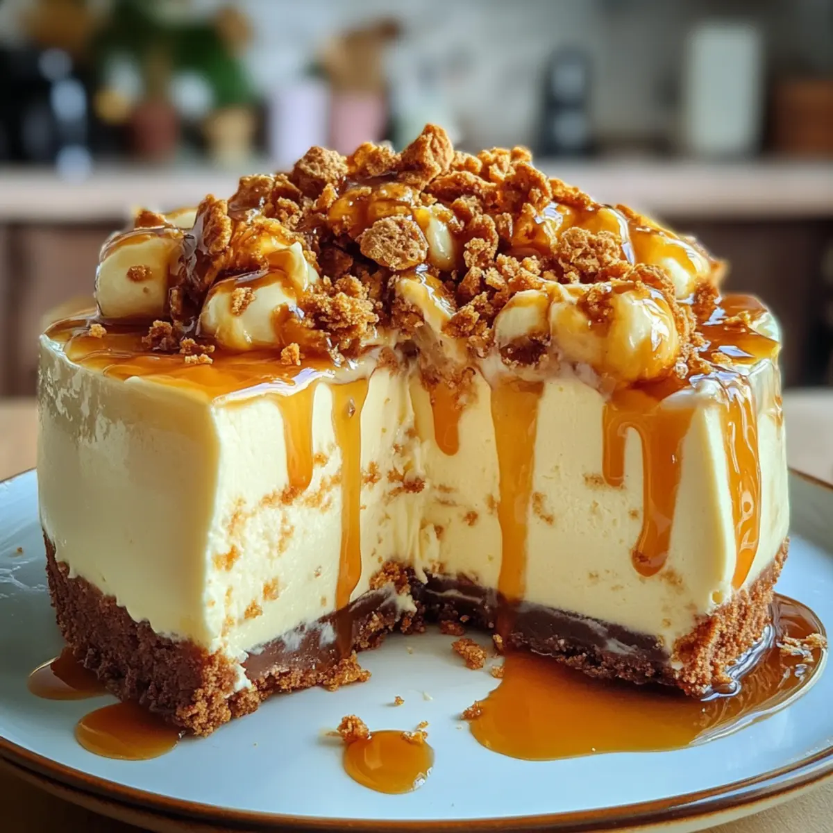 This Crunchy & Creamy Honeycomb Cheesecake Cake is an indulgent dessert that combines rich cheesecake with delightful crunch, perfect for dessert lovers.