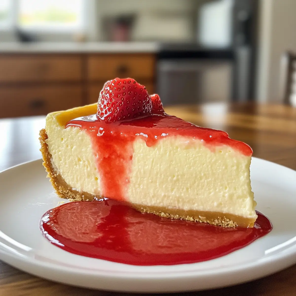 - Serve: Carefully remove the cheesecake from the springform pan, slice into wedges, and lavishly top each slice with the fresh strawberry sauce before serving.