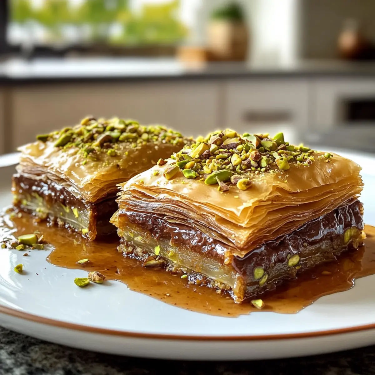 Enjoy the delightful process of creating your own Decadent Pistachio Chocolate Baklava!