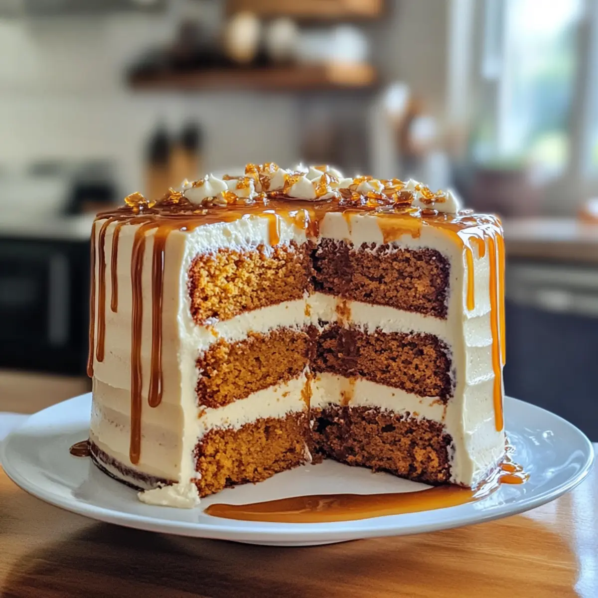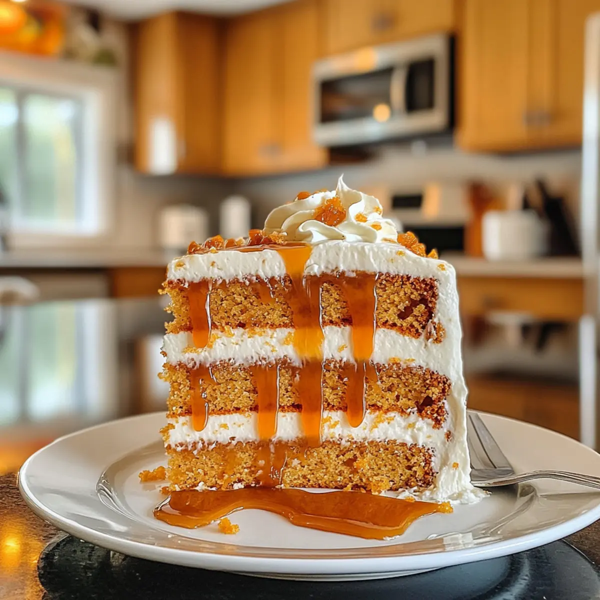 Indulgent Experience: Each bite of this Decadent Pumpkin Salted Caramel Layer Cake is a heavenly treat, blending festive spices with luxurious caramel flavors.