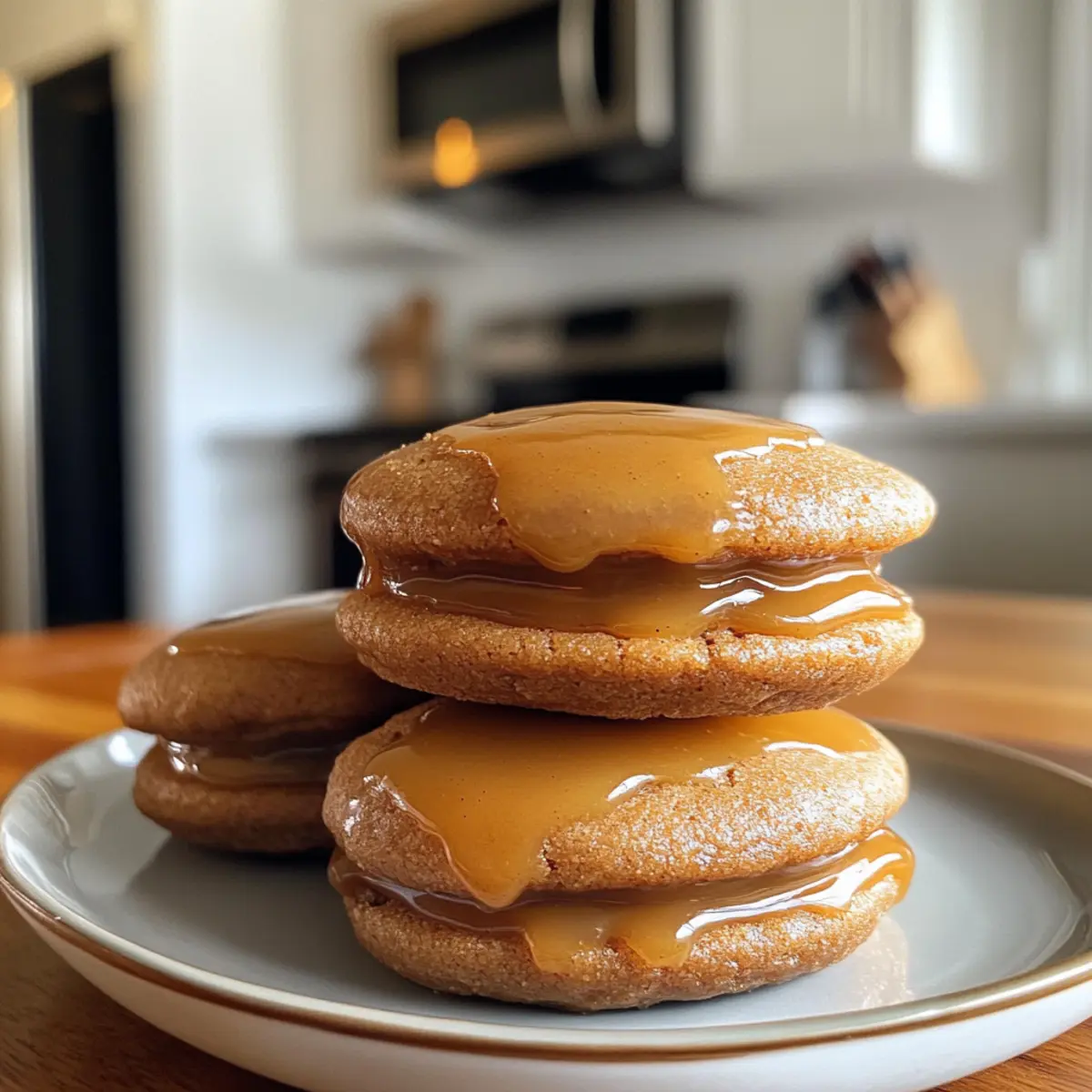 10. Assemble Whoopie Pies: Choose cookies of similar sizes, spread or pipe the caramel filling on one flat side, and sandwich it with another cookie. Enjoy your cozy creation!