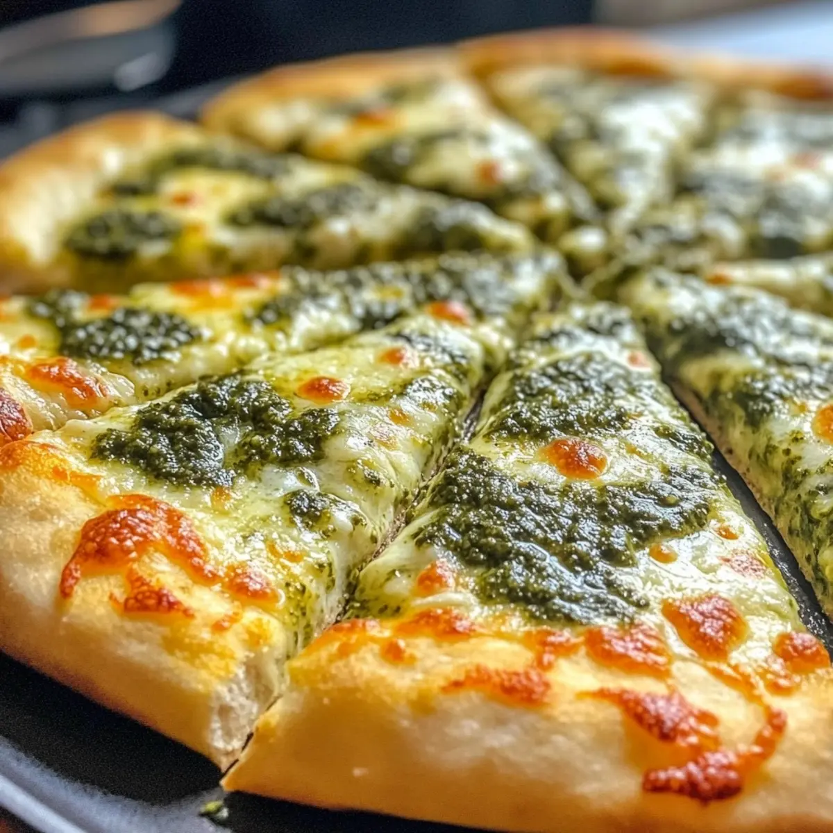 Mouthwatering Texture: Experience a crispy crust topped with gooey cheese and a vibrant pesto that takes your meal to a whole new level.
