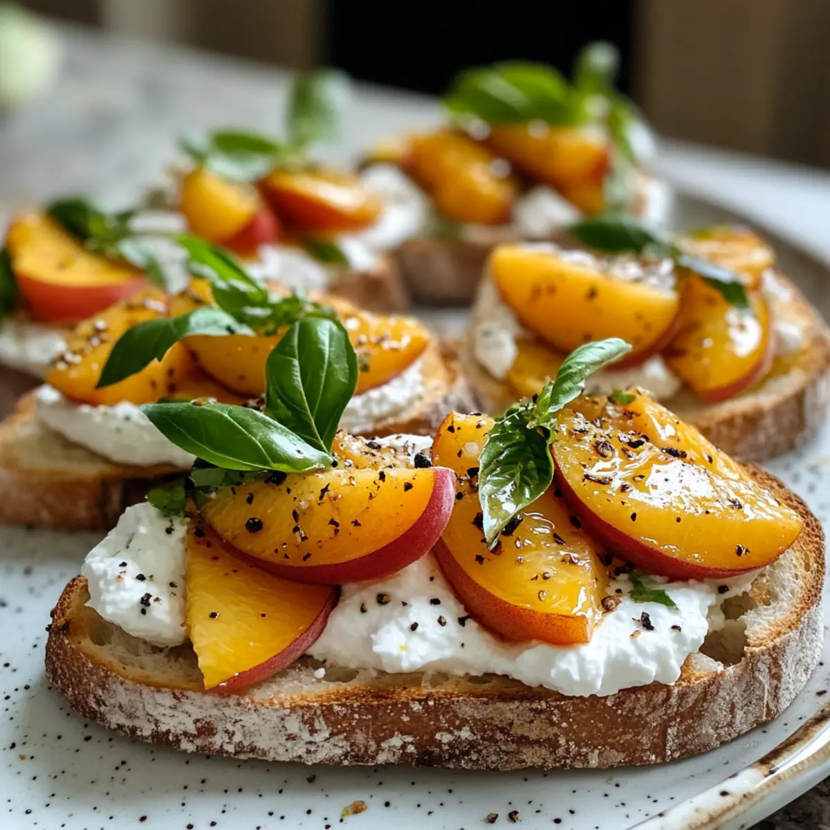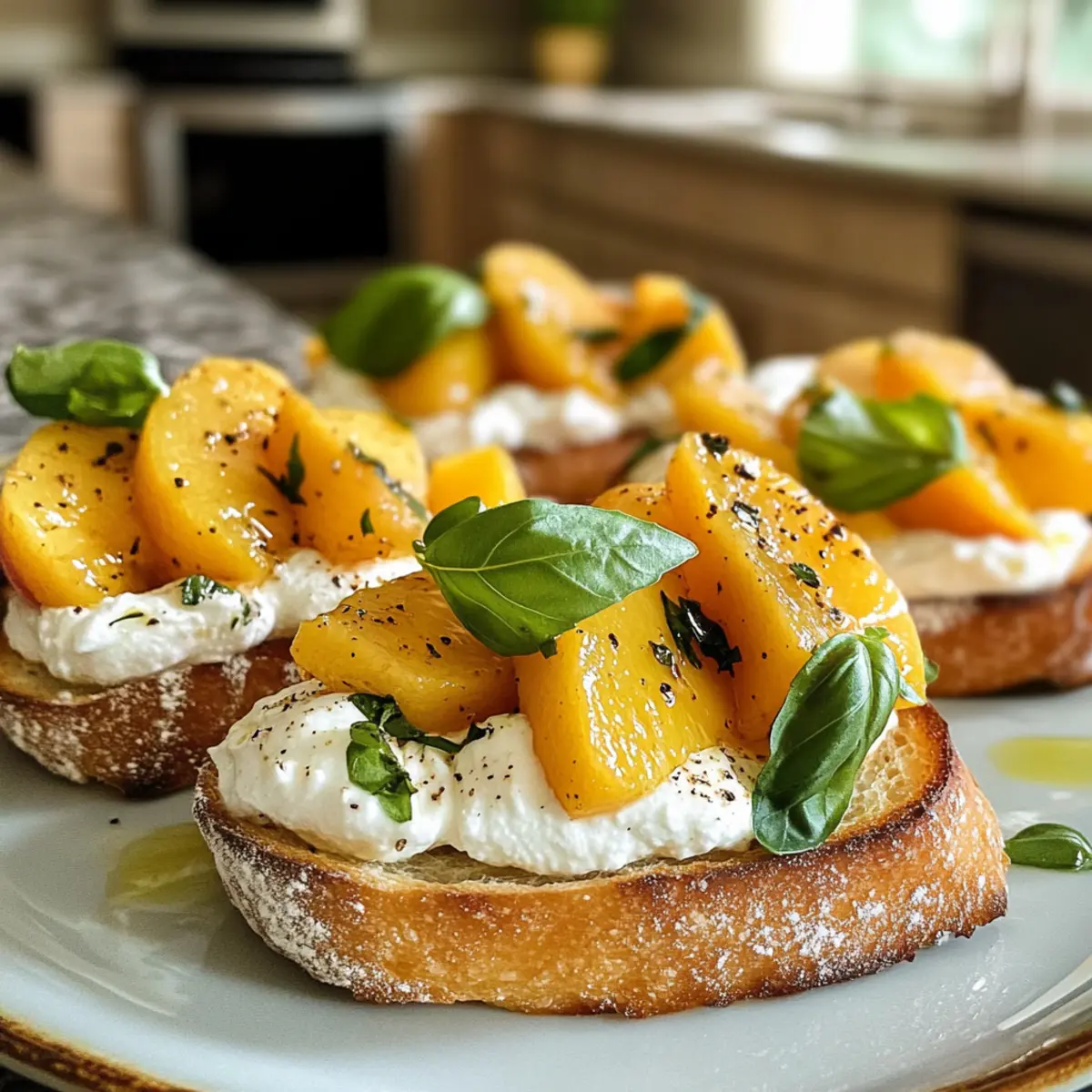 Tropical Twist: Replace peaches with ripe mango or pineapple for an exotic touch. The tropical fruits add an exciting flavor profile to your bruschetta.