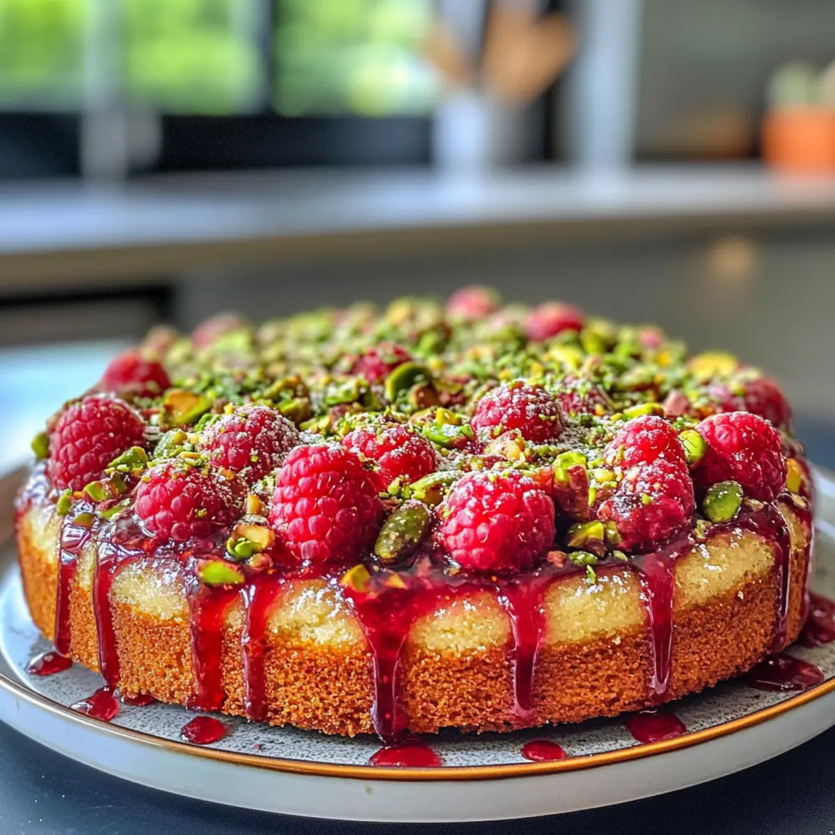 Delightful Fusion: This cake brilliantly blends tart raspberries with crunchy pistachios for an unforgettable flavor experience.