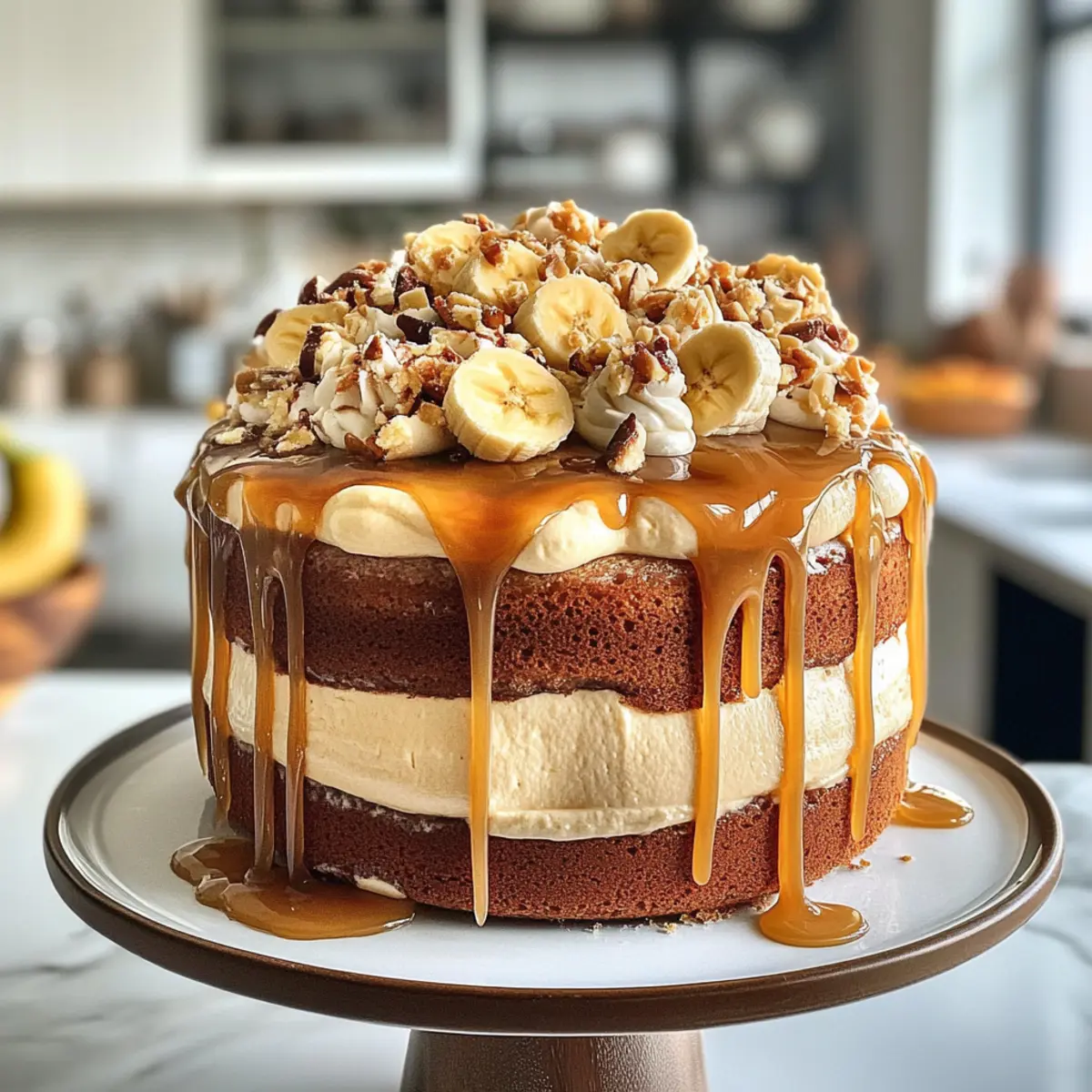Indulgence at its finest: This cake combines a rich banana flavor with a luscious salted caramel, making every bite a sweet embrace. Versatile toppings let you customize to suit seasonal fruits or chocolate chips, ensuring endless delight. Perfect for gatherings, it impresses guests while keeping preparation simple. Light and fluffy texture offers a melt-in-your-mouth experience reminiscent of your favorite banana cream pie, while being an unforgettable centerpiece for any occasion, just like my Decadent Apple Crumble.