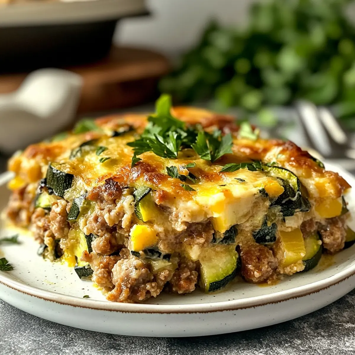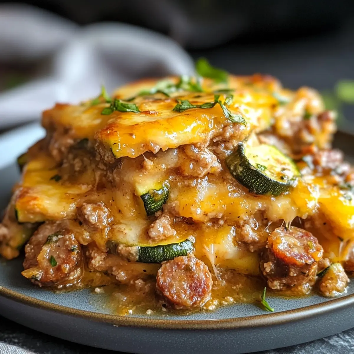 Savory layers come together beautifully: Juicy Italian sausage and tender zucchini create a rich, satisfying mix that your family will love.