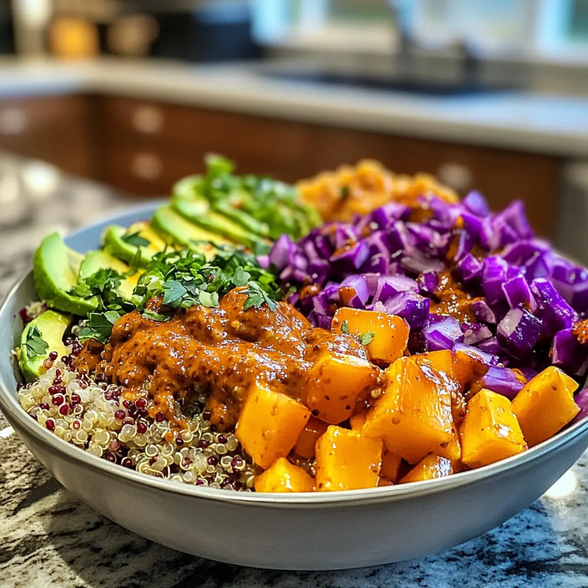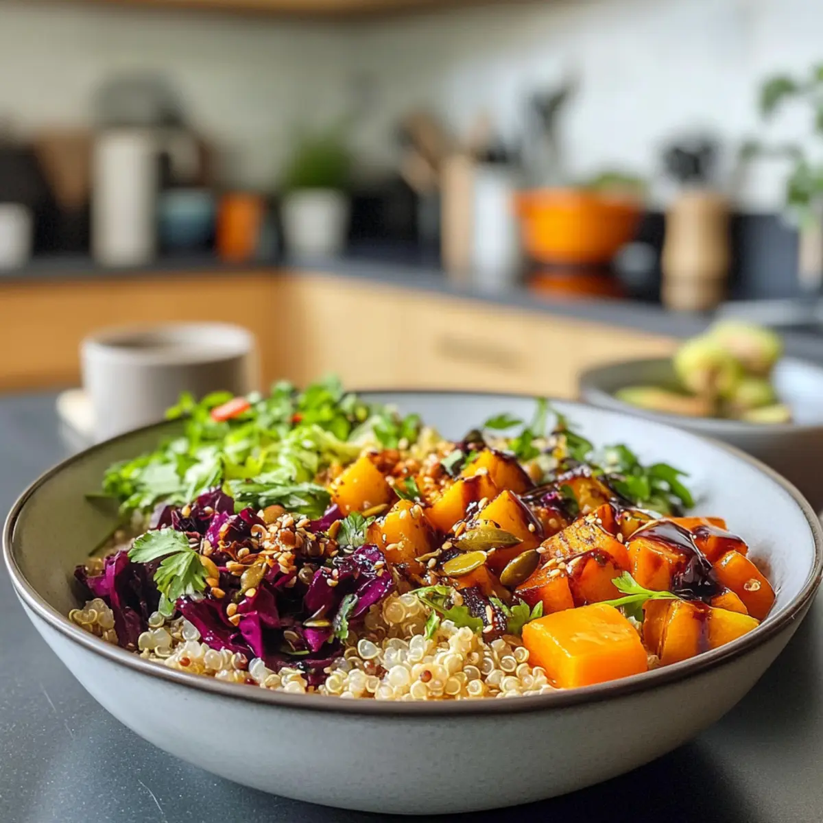 Nutritious Delicious Autumn Glow Quinoa Bowls are a warm, comforting dish perfect for cozy dinners and packed with vibrant flavors.