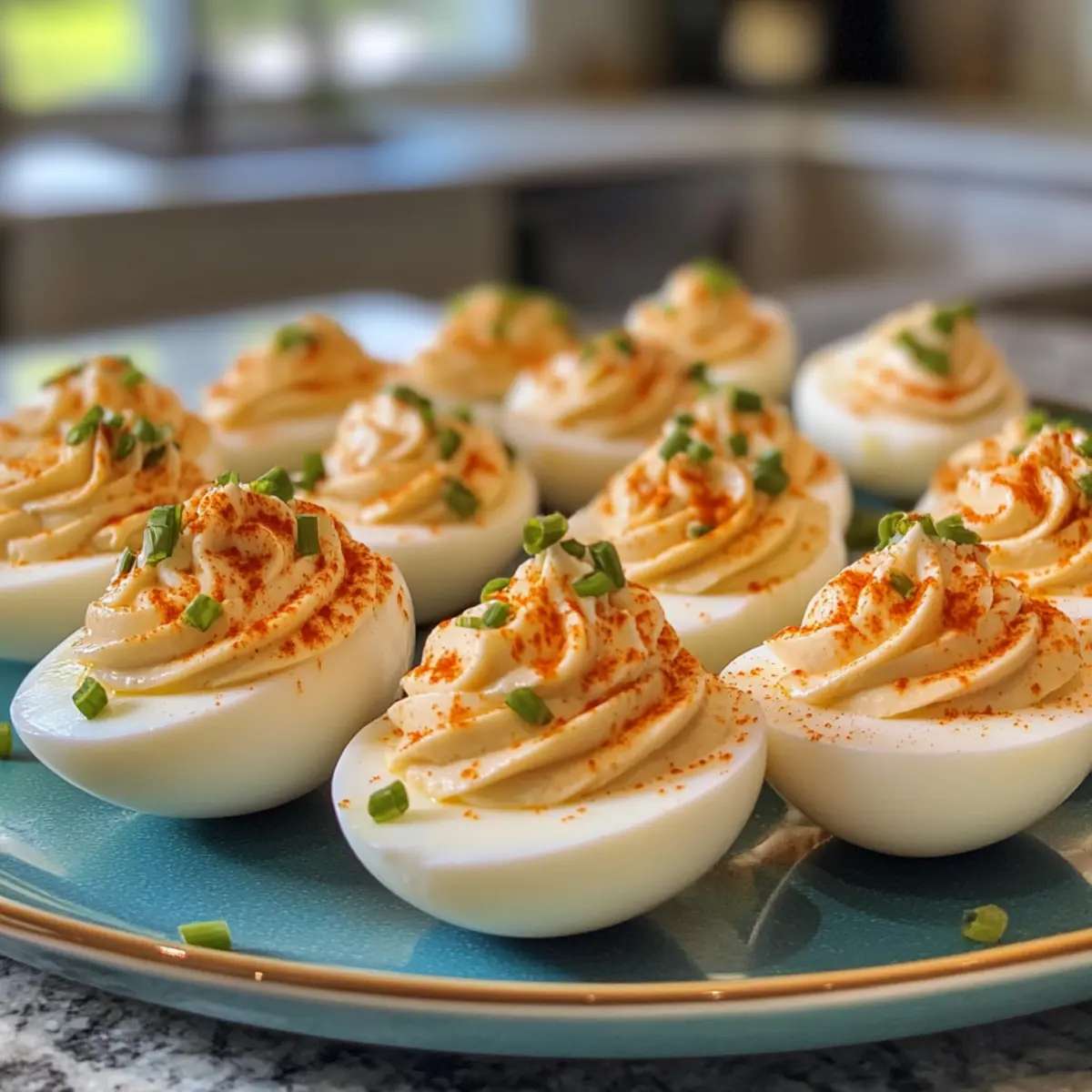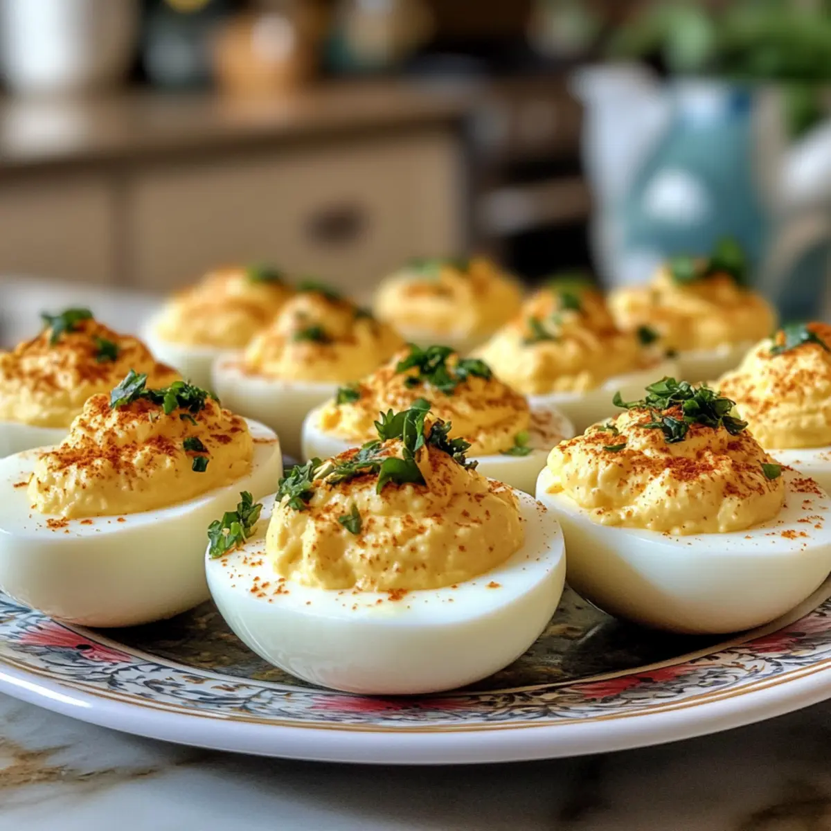 Creamy, Zesty Delight: These deviled eggs combine rich yolks with tangy mustard and sweet pickles for a flavor explosion that keeps everyone coming back for more.