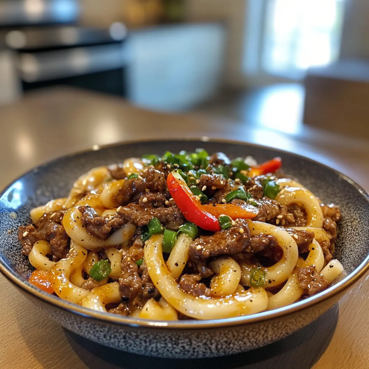 - Combine: Stir the prepared sauce again, then pour it over the beef along with the cooked udon noodles. Toss and heat for about 2-3 minutes.
