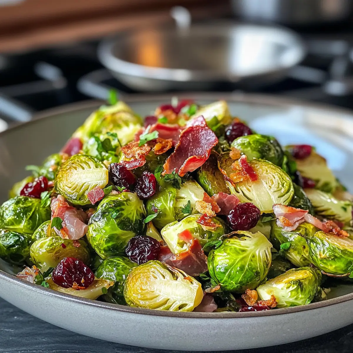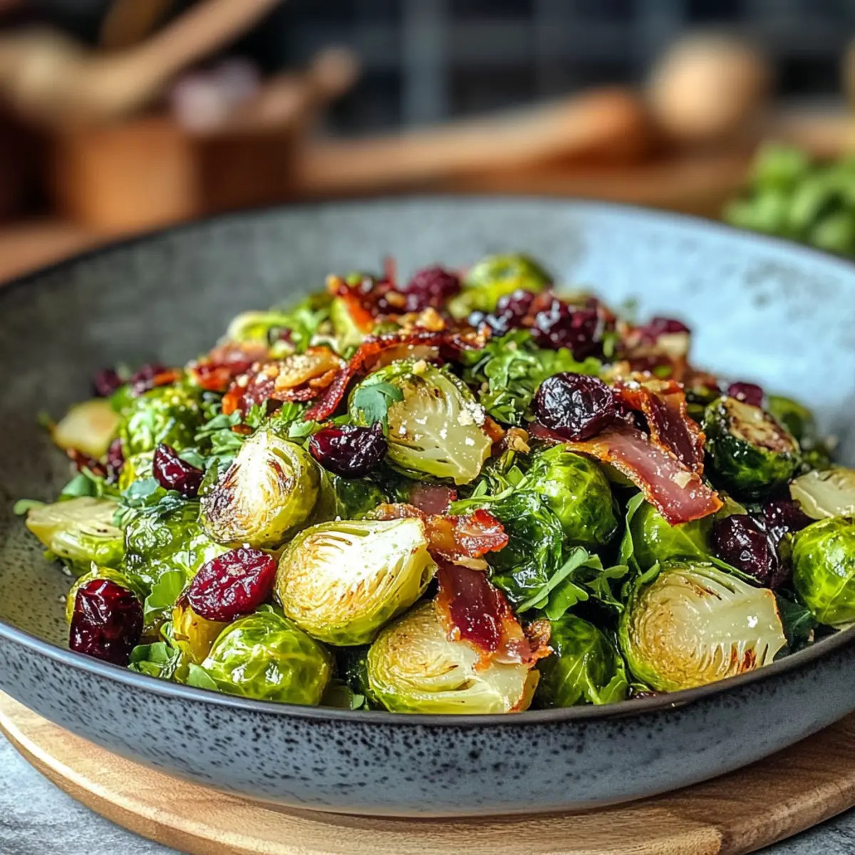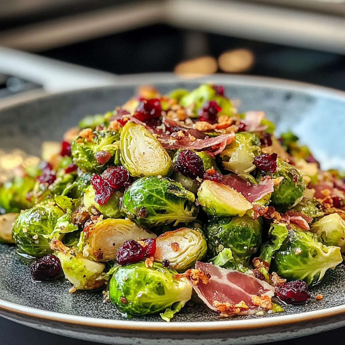 • Get ready to explore the delightful flavors of this Savory Delicious Baked Brussels Sprout Salad with Crispy Prosciutto and Cranberries!