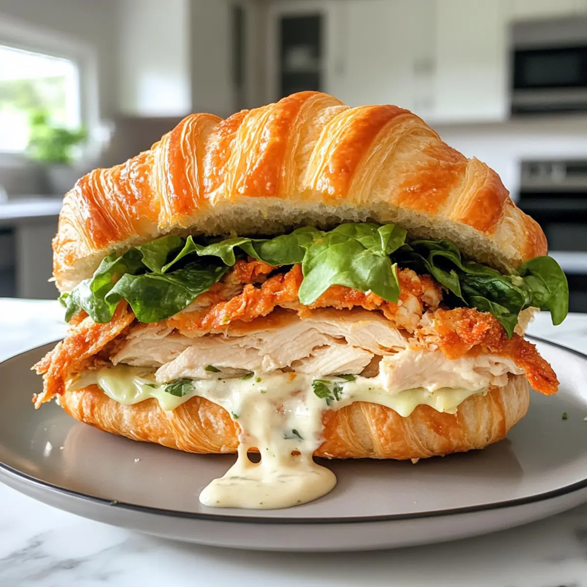 Customize Your Greens: Not a fan of romaine? Substitute with spinach or kale for a delightful twist in your Chicken Caesar Croissant Sandwich!
