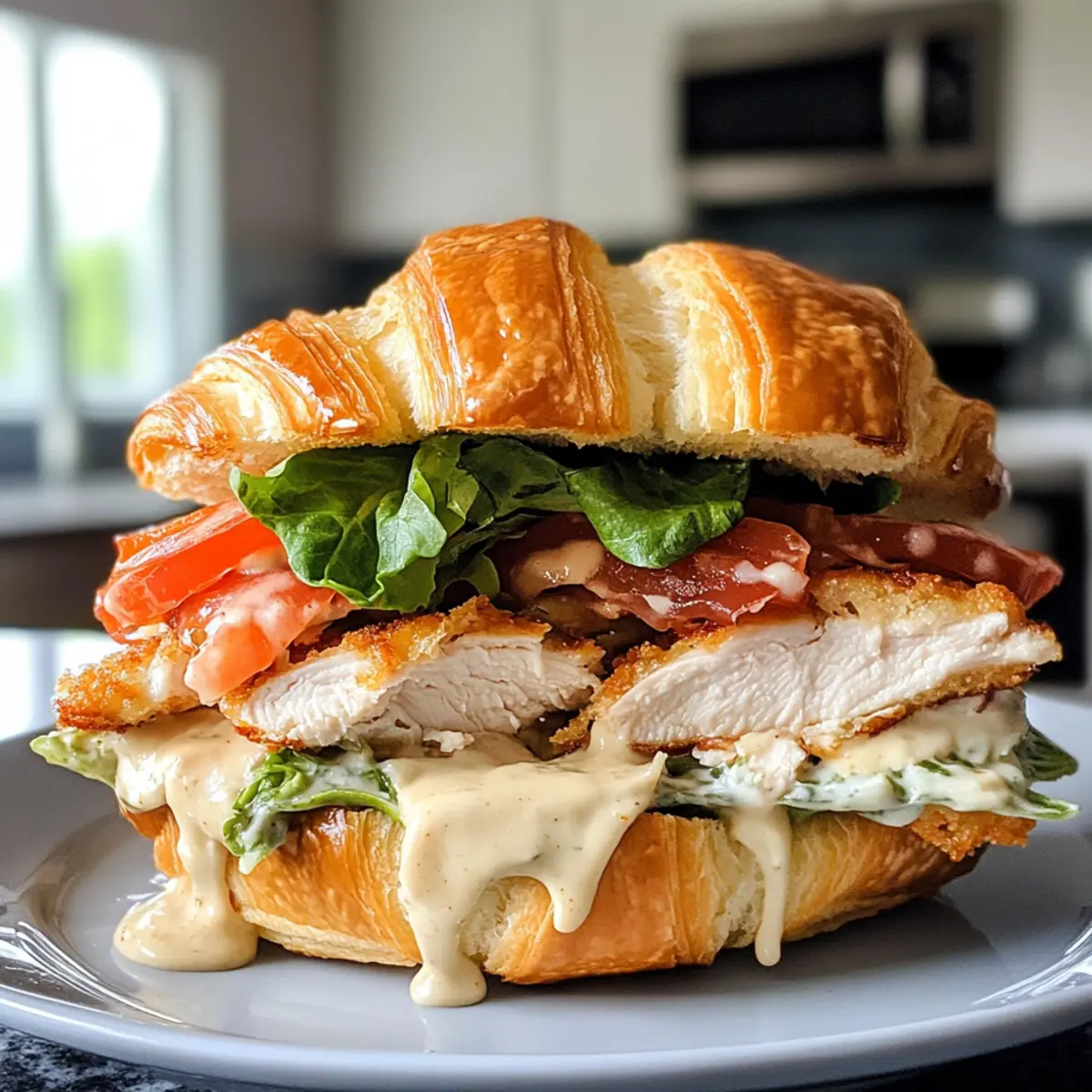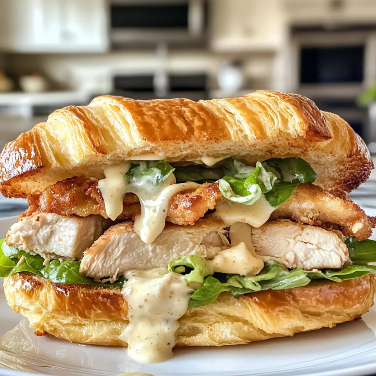 Preparing the Savory Delicious Chicken Caesar Croissant Sandwich can save you valuable time during busy weeknights! You can bread and fry the chicken, then refrigerate it for up to 3 days in an airtight container to maintain its crispy texture. Additionally, you can whisk together the dressing in advance and store it in the fridge for up to 24 hours, allowing the flavors to meld beautifully. When you’re ready to serve, simply reheat the chicken lightly in a skillet to ensure it stays crispy, then assemble the sandwiches with fresh, dressed romaine and buttery croissants. This make ahead strategy ensures you’ll have a delicious meal that tastes just as good as if it were freshly made!