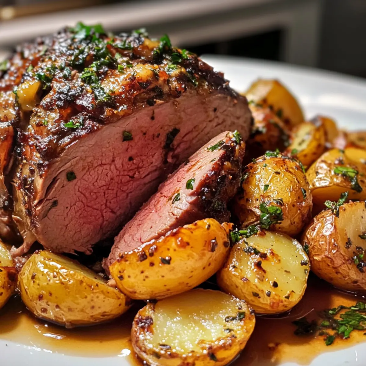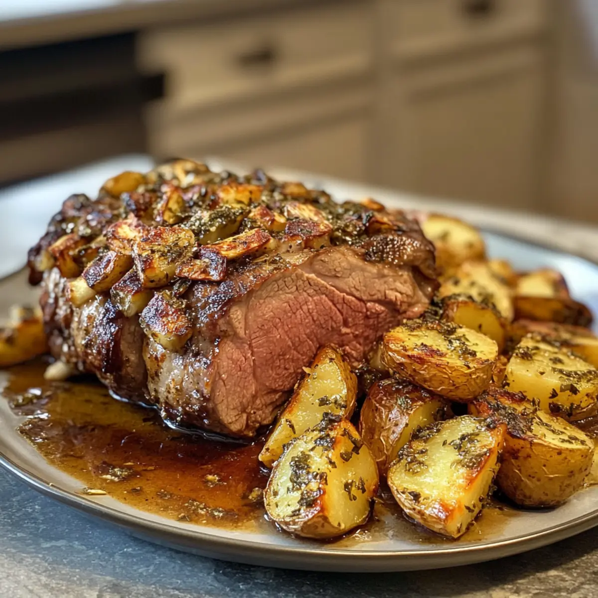 Perfectly Crispy Potatoes: Yukon golds roast to golden perfection, soaking up all the savory juices from the lamb.