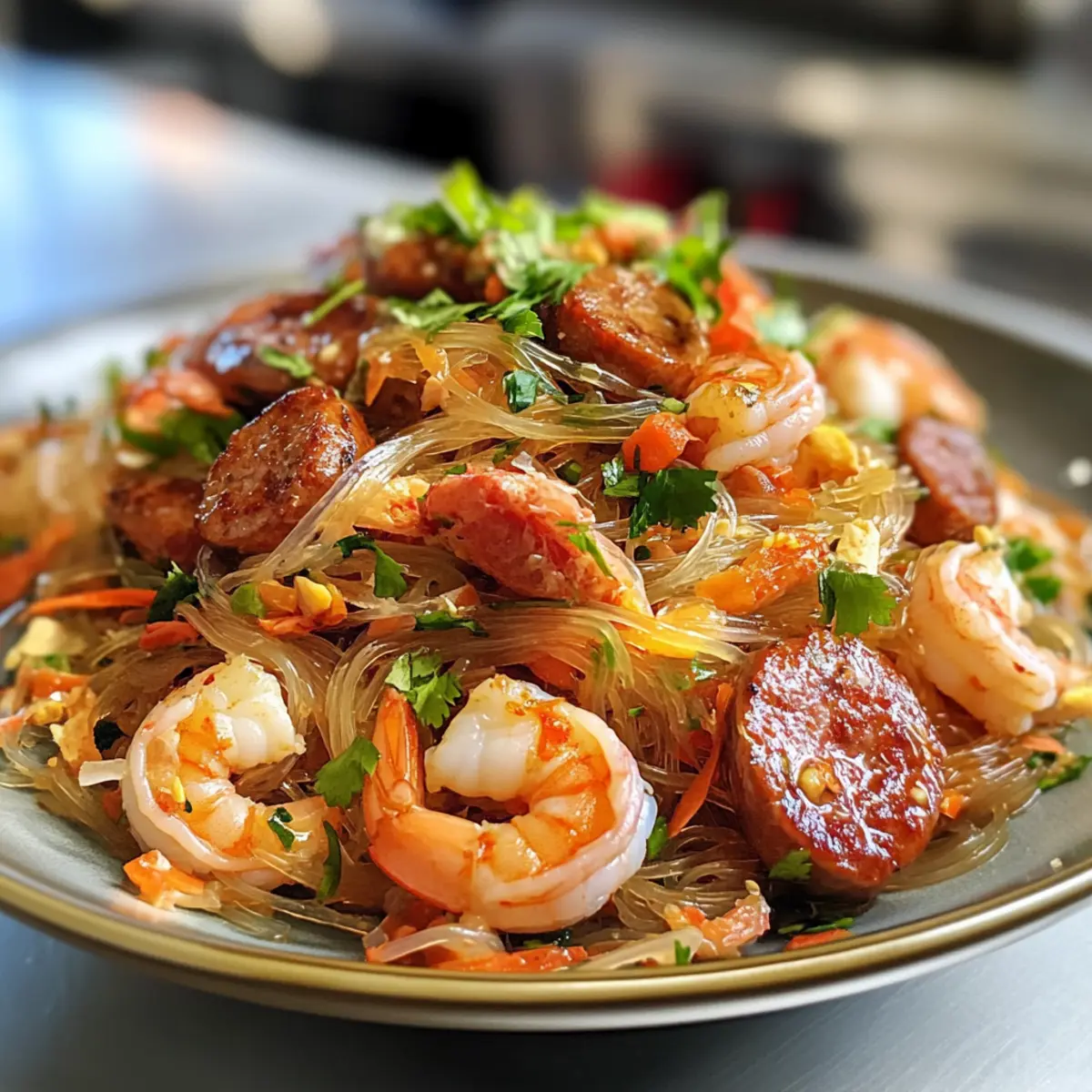 Savory Thai Glass Noodle Salad with Sausages and Shrimps Bliss