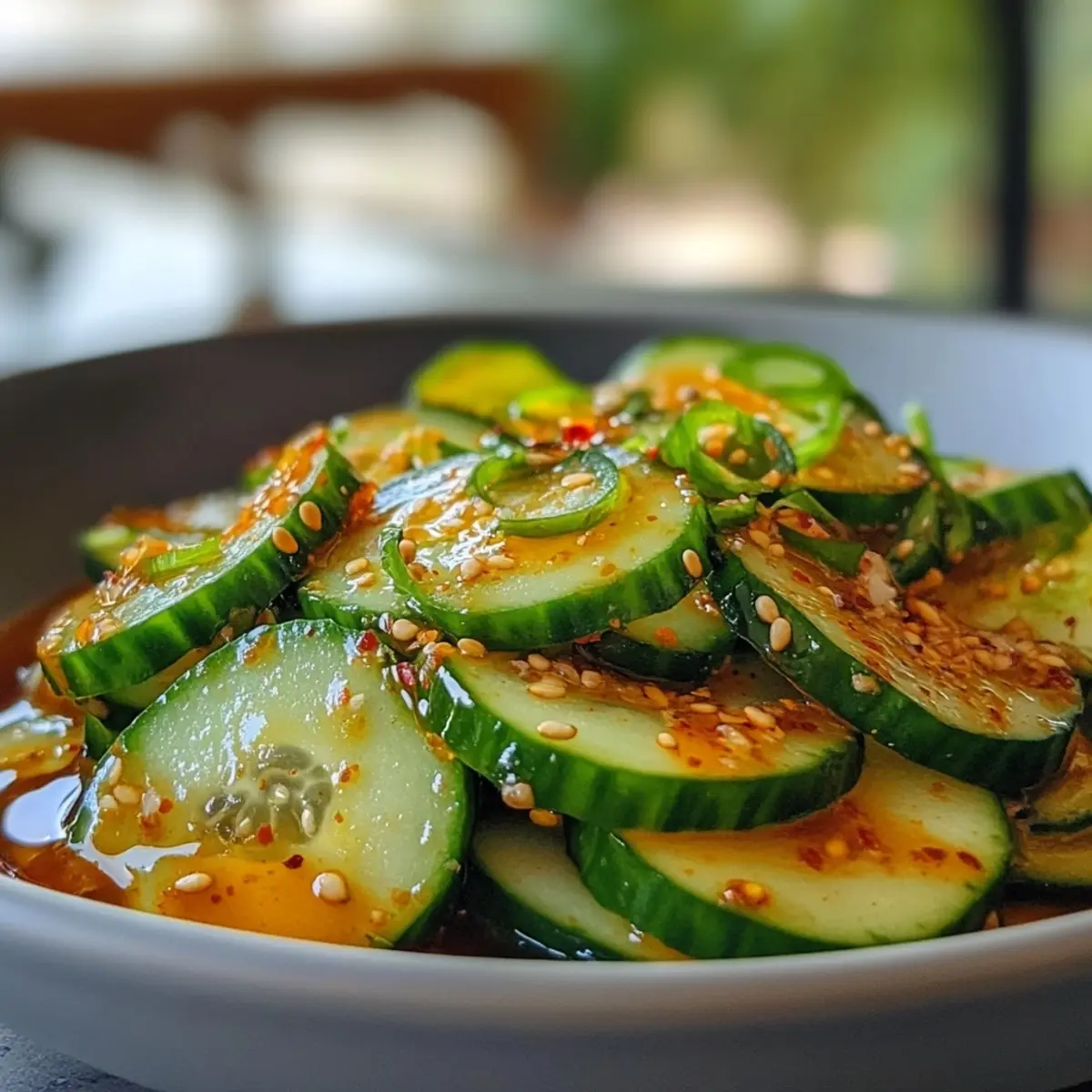 These Spicy Cucumber Salad preparations are perfect for busy cooks looking to save time during the week! You can slice the cucumbers and prepare the dressing up to 24 hours in advance, storing them separately in airtight containers in the refrigerator to maintain freshness. Lightly salt the cucumbers and let them sit for about 10 minutes before draining excess liquid, which helps preserve their crunch. When you’re ready to serve, simply combine the soaked cucumbers and dressing, garnish with green onions and sesame seeds, and enjoy a vibrant, flavorful salad that’s just as delicious as if you made it fresh!
